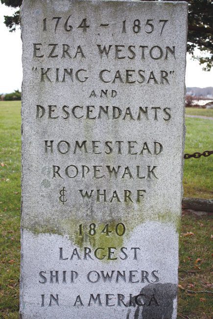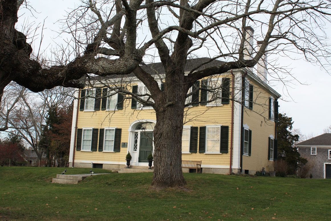 This Federal mansion known as the King Caesar House (120 King Caesar Road), was owned by Ezra Weston II, a prominent 19th century shipbuilder and merchant who operated a large maritime industry based in Duxbury and Boston. The firm shipped large cargoes of cotton from ports in the southern US to the textile mills in Liverpool, England. The ship “Hope” upon its return, carried back to Duxbury Irish passengers fleeing An Gorta Mór or The Great Hunger. Other cotton freighters of Ezra Weston II often brought Irish passengers to America in their holds.